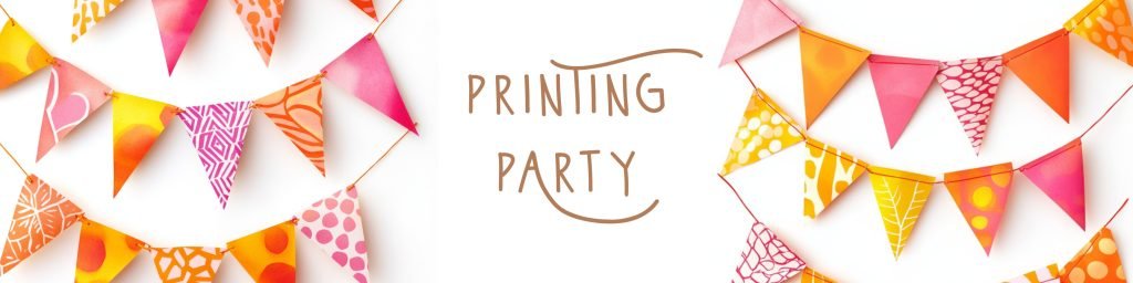 Inspired by parties and the decoration of communal spaces in homes, schools and community we create a joint strand of bunting for the next party. We gelliprint the sheets in the first session and cut and attach the bunting to the string in the second session.