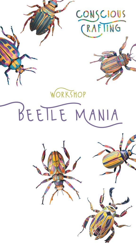 In the workshop, participants will learn how to use coloured pencils, markers, and glitter glue to bring their beetle artworks to life. Through techniques such as colouring in and collage, they will discover the joy of conscious crafting. No prior artistic experience is necessary, as participants will receive step-by-step guidance and encouragement to personalize their artwork with their own unique insights and ideas.