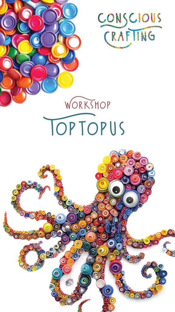 Project: a large octopus mural made from reused plastic bottle caps