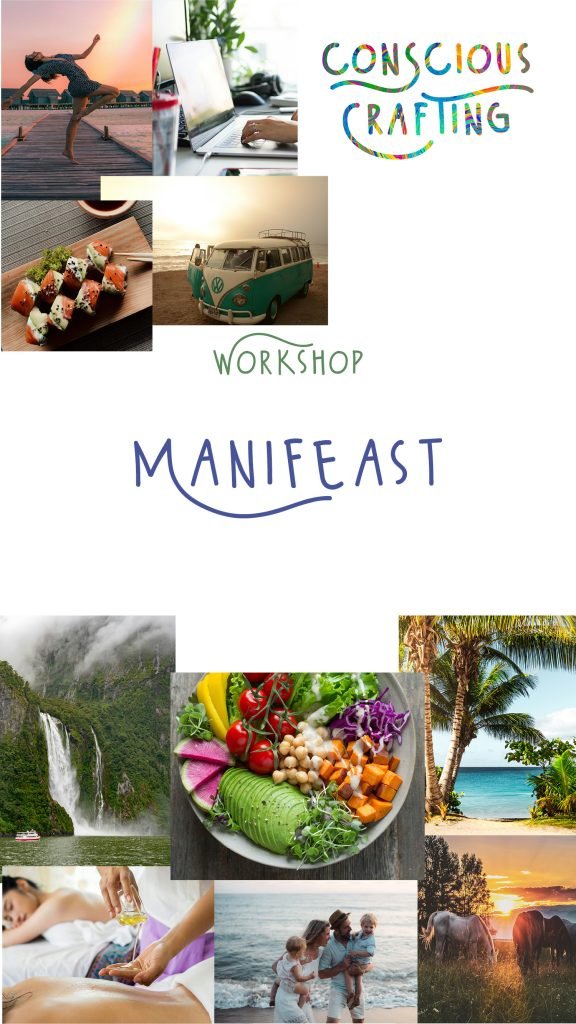 We are creating a vision board, a collage that depicts the future life we hope to achieve and experience. To increase the power of manifesting our vision, we will do some “scripting.” To solidify our scripting, we will receive positive feedback from the other participants, imagining that it has already happened.