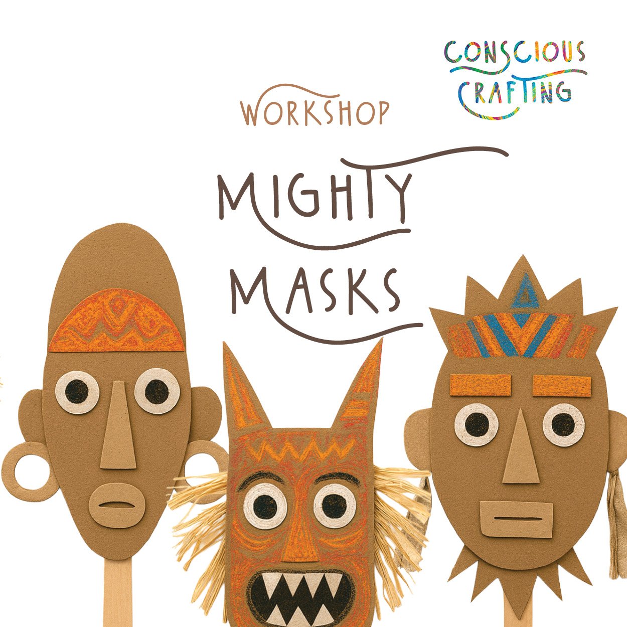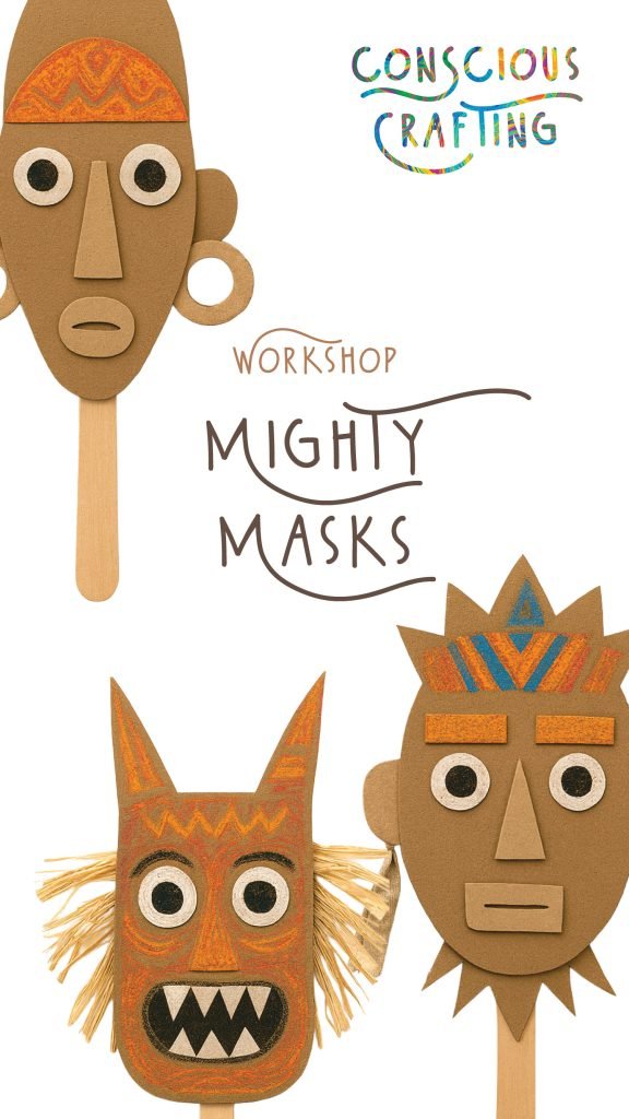 Design striking cardboard masks inspired by African traditions, powerful animals and fierce imaginary beings.