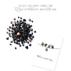 Choose from the templates included in the kit to inspire your pebble art, and use strong adhesive or a glue gun to secure your designs onto the templates printed on white cardstock. To add a finishing touch, frame your favourite creation. Upcycling is encouraged by painting an old frame for a personalized and eco-friendly keepsake, but this step is optional. This hands-on activity is ideal for unwinding, sparking creativity, and making cherished keepsakes to enjoy or gift.