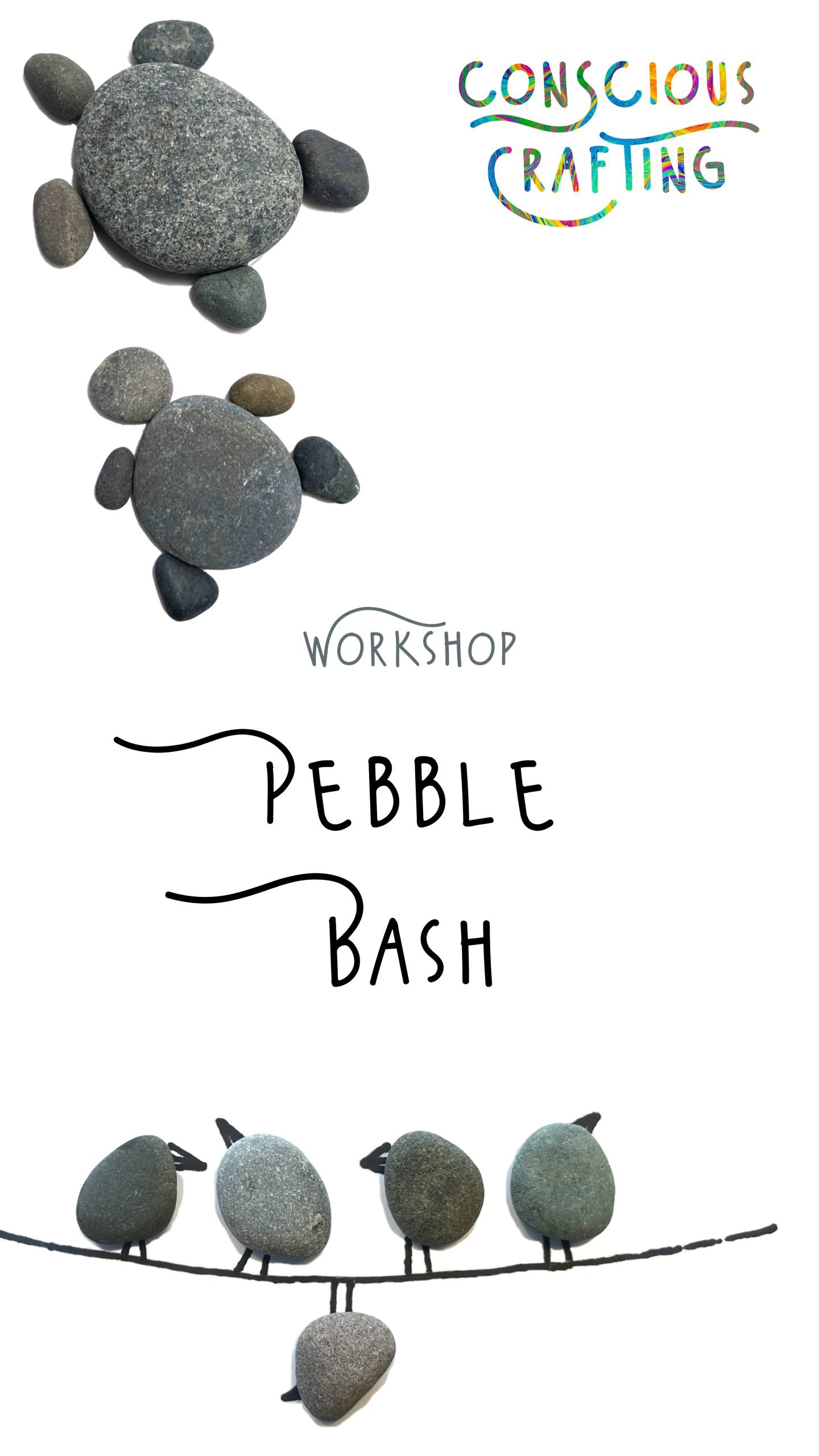 During the workshop, participants will effortlessly learn how to use reclaimed frames, paper, black liner, glue, and small pebbles to create their own pebble art. With clear instructions and gentle guidance, they’ll explore techniques such as drawing and working with glue guns, transforming ordinary pebbles into extraordinary works of art. Conscious Crafting workshops prioritize simplicity and ease, ensuring that every participant feels supported and empowered to unleash their creativity.