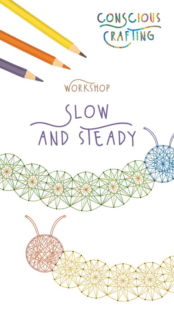 Participants begin by sketching their caterpillar design on a printed template sheet. Once they are satisfied with their design, it is transferred onto a small wooden plank. The plank is painted white before small nails are tapped along the design’s outline. In the second session, coloured string is wound between the nails to form the shape. All materials are provided, including templates, coloured threads, and shared tools. No prior experience is needed, and the process is broken down into clear steps while leaving room for individual choices in colour and pattern.