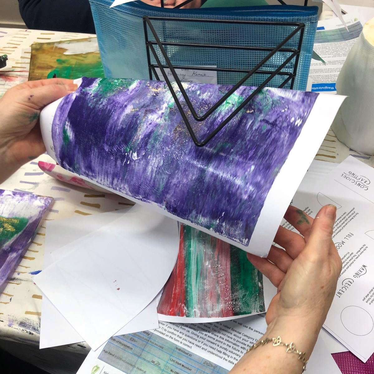 In this workshop, participants will learn to use gelliprint plates, acrylic paints, biodegradable glitter, and a variety of embellishments to create stunning visual effects on dark surfaces. The techniques explored include gelliprinting, which involves using a gel plate to transfer paint onto paper, and collage, where participants will layer materials to create textured and vibrant compositions. These workshops are accessible to everyone, regardless of prior creative experience, with guidance provided throughout to support participants in expressing their unique styles and ideas.