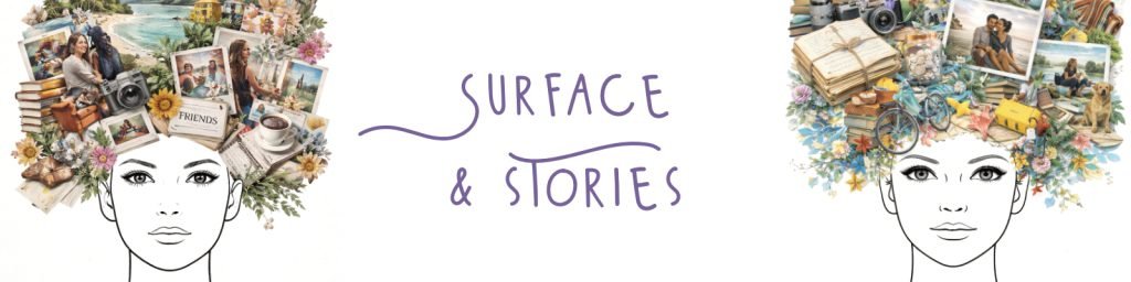 A layered face collage exploring how women present outwardly while holding rich, unseen stories beneath.